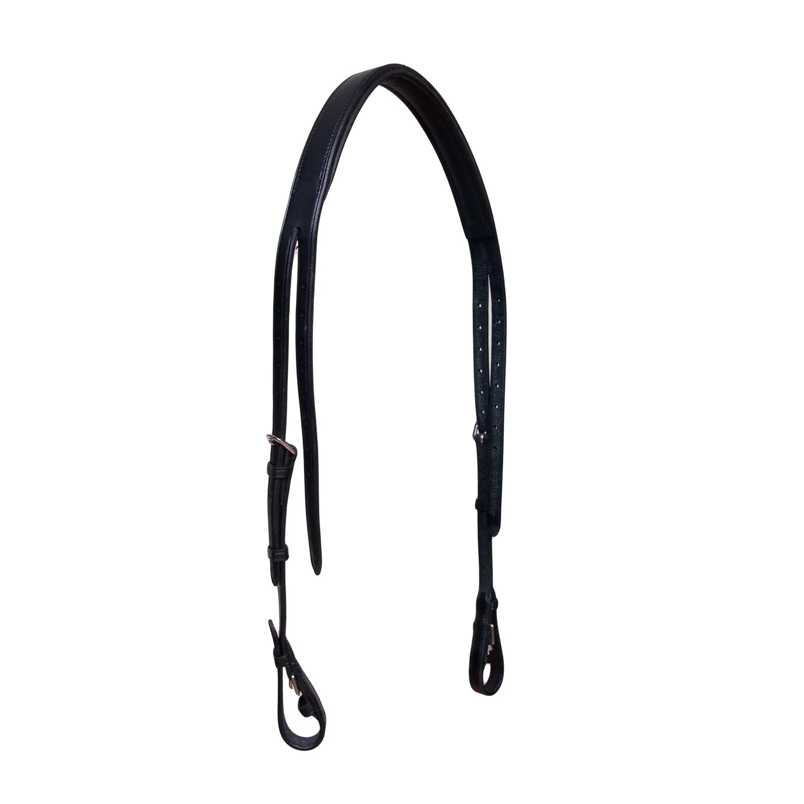 La parte del cuello sobre la que se construye la cabezada Kombi. Con herrajes de metal de alta calidad y cuero. Pieza básica del cuello de la cabezada Kombi. Artículos relacionados: 10265 – muserola o 10266 – muserola. 10534 – frontalera opcional.