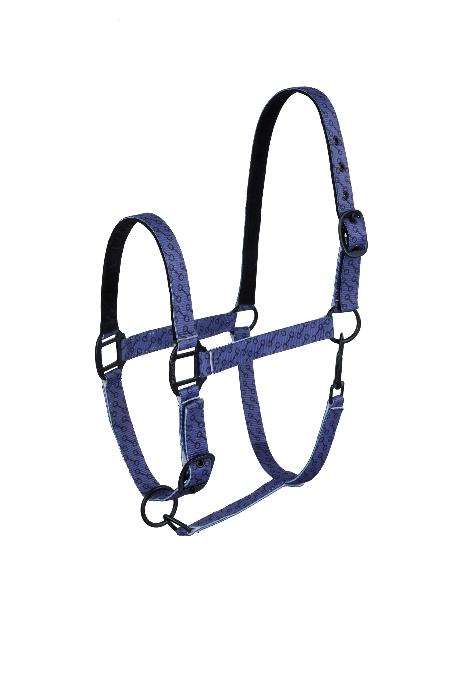 La cabezada de cuadra Horze Noir está estampado con un diseño de filete ecuestre elegante.