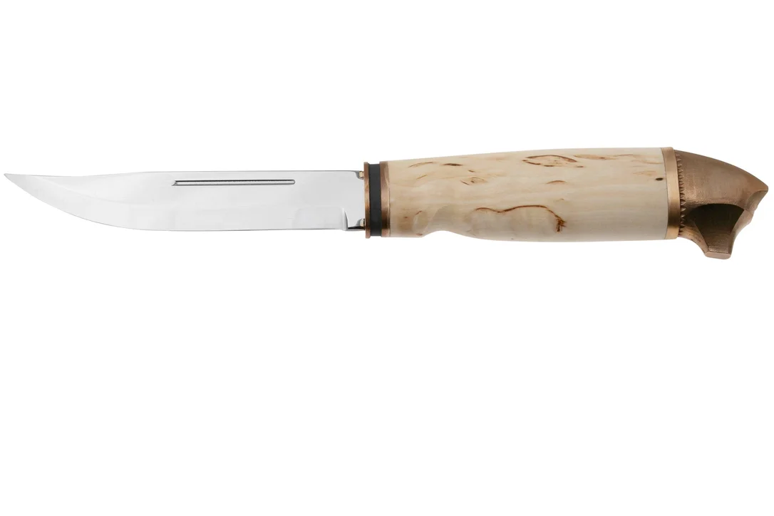 El Marttiini Bear 549011W es un Puukko finlandés tradicional basado en el Marttinni Lynx. Este tipo de cuchillo se utilizaba en Finlandia como cuchillo básico para las tareas cotidianas de corte, como la caza, la pesca o las tareas domésticas. Así pues, la inspiración para este cuchillo se extrajo de los casi 100 años de historia y experiencia en la fabricación de cuchillos que atesora la marca finlandesa Marttiini. El cuchillo está fabricado con materiales naturales. Madera para el mango y cuero para la funda. El cuchillo presenta un afilado scandi. El afilado scandi viene, como su nombre ya sugiere, de Escandinavia. El afilado escandinavo en los cuchillos para exteriores, los cuchillos de caza y los cuchillos de caza ha sido el estándar durante años. De hecho, un gran borde en forma de V, sin más adornos. El afilado scandi es fácil de fabricar y de afilar en casa. El afilado escandinavo es ideal para trabajar la madera. Debido a que la hoja es relativamente gruesa, es muy fuerte y puede manejar bastante. En el extremo del mango, este cuchillo tiene un característico pomo con forma de cabeza de oso salvaje de bronce.