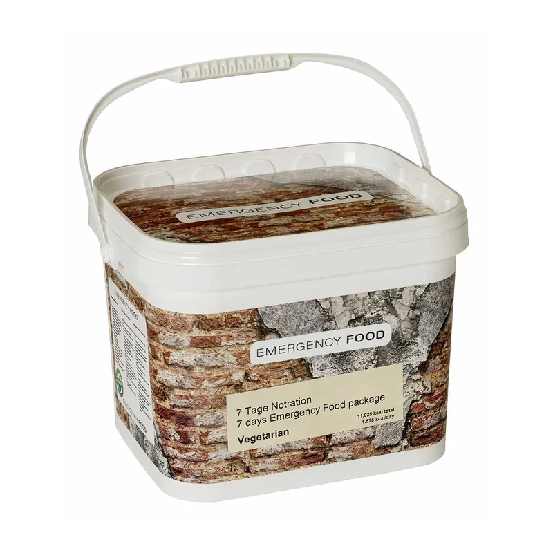 Es un pack acondicionado en cubo para una duración de 7 días en modo autonomía con cerca de 1700 Kcal por día. Este cubo con solo productos vegetarianos puede transportarse fácilmente y pesa solo 3,9 kg. En este pack tienes platos vegetarianos, desayunos y raciones compactas NRG-5.