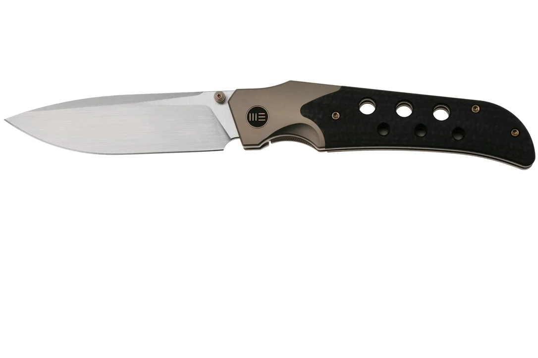 La WE Knife Guthrie WE23072B-2 Satin Champagne Titanium Twill Carbon Inlay es una elegante navaja EDC, fabricada con materiales de primera calidad, diseñada por Jason Guthrie. Las líneas futuristas del mango encajan a la perfección con el flipper de fresado plano y las bellas líneas de la hoja.