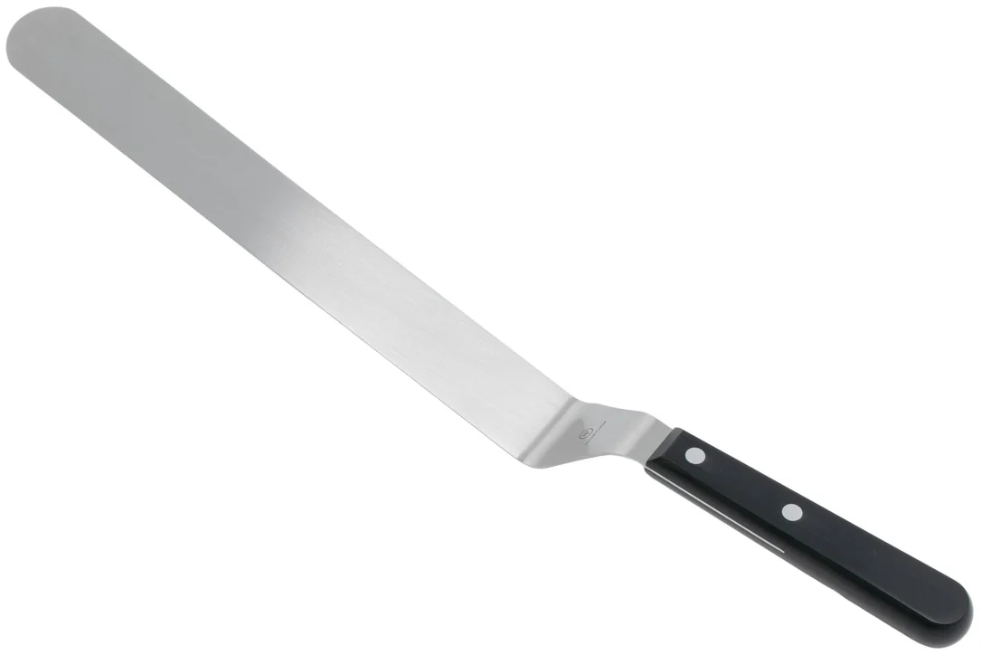 Esta espátula Gourmet Wüsthof de 25 cm es ideal para levantar rebanadas de pastel o un trozo de pescado. El mango curvado ofrece más espacio para las manos, lo que facilita su uso debajo de un plato. Otra ventaja en comparación con un cuchillo de cocina «de verdad», es que la espátula no está afilada. Esto es genial si el pastel o el pescado que has cocinado está colocado en vidrio o cerámica. El filo de tu cuchillo de chef podría dañarse, pero esto no será un problema si utilizas esta espátula.