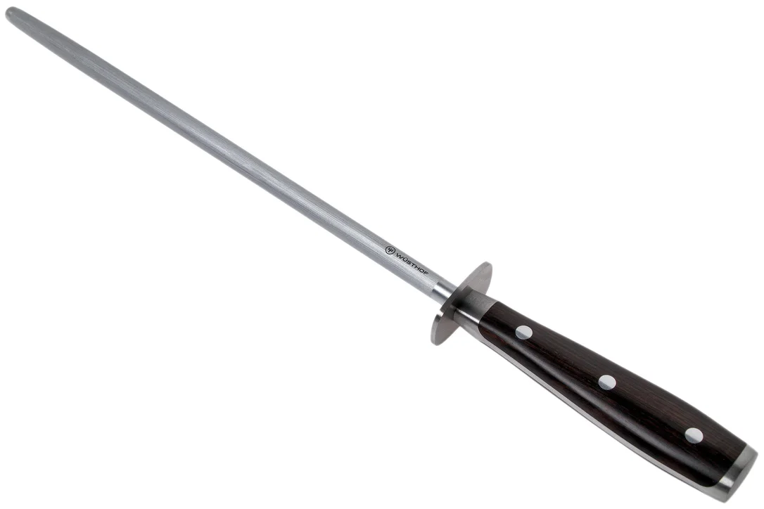 Esta chaira de acero Ikon de Wüsthof es la herramienta perfecta para afilar rápidamente tus cuchillos de cocina antes de usarlos. Antes de utilizar el cuchillo, pásalo unas cuantas veces por la chaira y aplana las rebabas que hayan aparecido durante el uso anterior. Atención: una chaira no afila tu cuchillo, ya que no elimina ningún material. Las chairas de acero se utilizan para el pequeño mantenimiento diario de tus cuchillos.